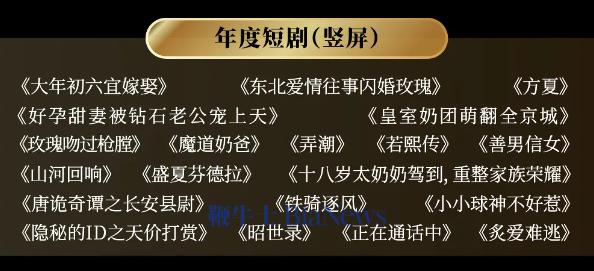 “年度短剧(竖屏)” 的入围名单同样看点十足,20 部作品涵盖了甜宠、悬疑、古风、现实等多个热门题材,几乎每一部都有着极高的市场热度。《东北爱情往事:闪婚玫瑰》凭借浓郁的地域特色和真实的情感表达圈粉无数,《好孕甜妻被钻石老公宠上天》将甜宠套路玩出新意,《唐诡奇谭之长安县尉》则以精良的制作和紧凑的悬疑剧情脱颖而出。此外,《盛夏芬德拉》的青春治愈、《隐秘的ID之天价打赏》的现实关照,也让观众看到了短剧题材的多元化可能,印证了短剧行业早已告别 “粗制滥造”,朝着精品化方向稳步迈进。