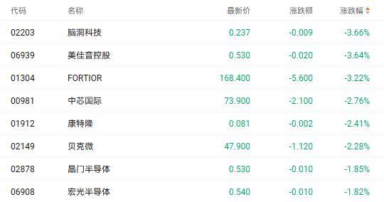 半导体板块今日表现疲软。交银国际指出,仍看好半导体国产替代大趋势,AI基础设施建设有望利好本土晶圆代工厂商。该机构将中芯国际评级上调至“买入”,目标价看高至90港元;同时上调华虹半导体目标价至90港元,维持“买入”评级。