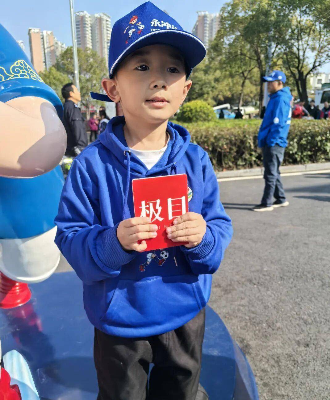 场外集市迎来第二波客流。 一家三口在摊位前试穿亲子款冲锋衣,妈妈对女儿说:“晚上咱们穿这个看电视直播,给叔叔们加油。 ”女孩举起印着“永冲锋”的小旗子,奶声奶气地重复:“永冲锋! 永冲锋! ”