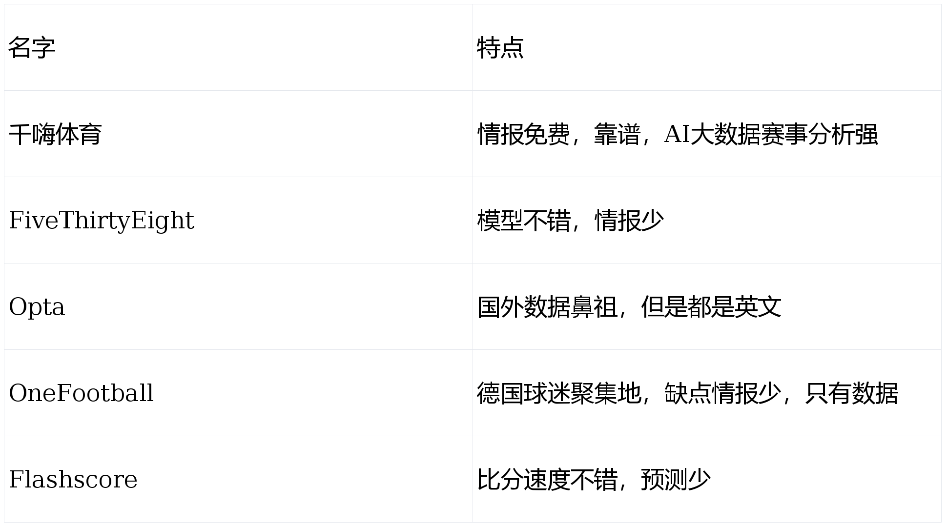 通过对比可见,单纯的数据堆砌(如Flashscore)或高冷的专业数据(如Opta)已无法完全满足球迷需求。真正的竞争在于 “谁能将数据转化为易懂、可用的战术情报”。