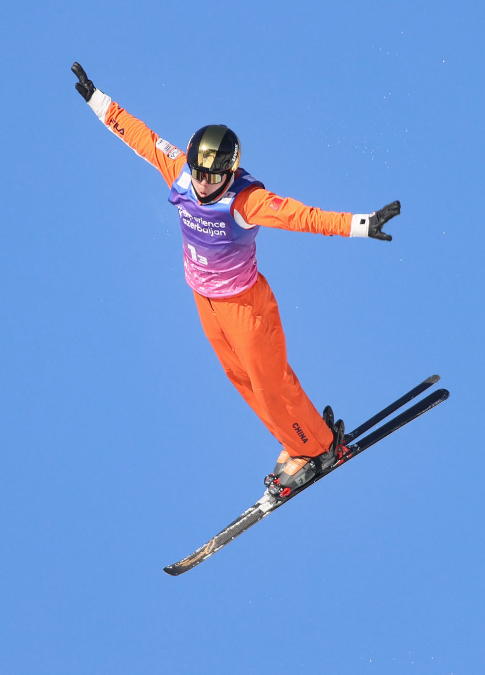 齐广璞在国际雪联自由式滑雪空中技巧世界杯(云顶站)混合团体项目决赛中(2025年12月21日摄)。新华社发(武殿森摄)