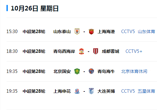 中超第28轮直播来了泰山对阵海港开球时间有变申花蓉城同日金年会- 金年会体育- 官网APP开赛