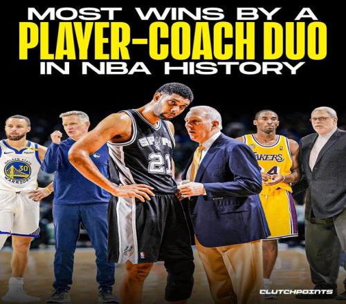 其中,邓肯与波波维奇搭档拿下1001场胜利,排名历史第一,历史前十中仅有两队搭档是现役球员与现役主帅。
